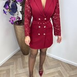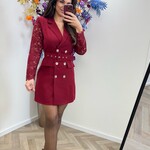 Blazer Dress Lace Sleeve Bordeaux