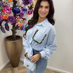 Blouses Stripes leopard ruffle Light Blue