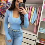 - LET OP ! Ons model draagt onder de body een topje zodat hij minder open valt