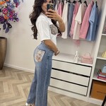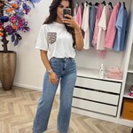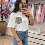 T-shirt Leopard pocket Diamonds White