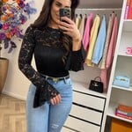 Top Lace flair mouw Black